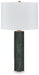Details Made of green marble and metal with drum hardback fabric shade, Goldtone accents, 3-way switch, 1 E26 socket, type A bulb recommended (not included); 100 watts max or LED equivalent; UL Listed, Assembly required