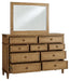 | Details | B895B7: Includes upholstered panel headboard, footboard, rails and slats, Made with hardwood solids, hickory veneer and MDF substrates, Light brown wood-tone finish, Polyester upholstery, Foundation/box spring required, sold separately, Mattress available, sold separately, Assembly required, B895B1: Includes dresser and mirror, Made with hardwood solids, hickory wood veneer and MDF substrates, Light brown wood-tone finish, Dark bronze-tone drawer pulls, 9 drawers with fully finished interior, dovetail construction and heavy duty ball-bearing side glides (top drawers felt lined), Mirror attaches to back of dresser, B895-46: Made with hardwood solids, hickory wood veneer and MDF substrates, Light brown wood-tone finish, Dark bronze-tone drawer pulls, 6 drawers with fully finished interior, dovetail construction and heavy duty ball-bearing side glides (top drawers felt lined), B895-93: Made with hardwood solids, hickory wood veneer and MDF substrates, Light brown wood-tone finish, Dark bronze-tone drawer pulls, 3 drawers with fully finished interior, dovetail construction and heavy duty ball-bearing side glides (top drawer felt lined), 110V power supply with USB-A and USB-C charging ports, Power cord included; UL Listed, | |