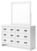 | Details | B427B2: Includes twin panel headboard, footboard, rails and slats, Made with hardwood solids, okoume veneer and MDF substrates, White finish, Foundation/box spring required, sold separately, Mattress available, sold separately, Assembly required, B427B1: Includes dresser and mirror, Made with hardwood solids, okoume veneer and MDF substrates, White finish, 6 drawers with dovetail construction and metal center guides, Hardware with dark finish, Drawer interiors are lined with a wood grain laminate for a clean, finished look, Mirror attaches to back of dresser, B427-92: Made with hardwood solids, okoume veneer and MDF substrates, White finish, 2 drawers with dovetail construction and metal center guides, Hardware with dark finish, Drawer interiors are lined with a clean wood grain laminate for a clean, finished look, | |