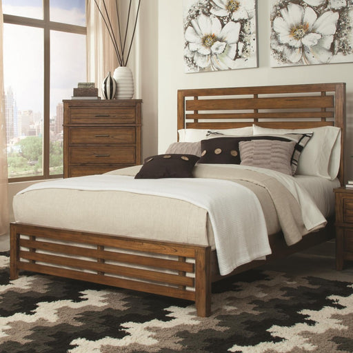 CoasterRelax in this transitional, stylish bed. A tall slatted headboard and low footboard creates an inviting appeal keeping your space feeling airy a...