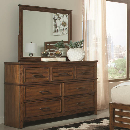 Signature Design by Ashley®Consumer's ChoiceGet the look of posh barn wood without setting foot in a salvage yard. Replicated rough-sawn oak of this dresser and mirror set has a vintage finis...