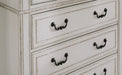 Details Made with hardwood solids, select wood veneer and MDF substrate, Two-tone finish (chipped white and brown wood-tone), Profiled drawer fronts and pilasters, Waist moulding, Metal hardware with dark bronze-tone finish, 5 smooth-gliding drawers with fully finished interiors, dovetail construction and metal ball-bearing side glides (top drawer felt lined), Assembly required