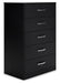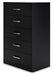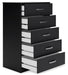 Details Made with engineered wood (MDF/particleboard/plywood) and decorative laminate for the right balance of affordability and durability, Matte black finish with subtle replicated wood grain, 5 smooth-gliding drawers with ball-bearing construction and vinyl-wrapped sides and back, Brushed nickel-tone hardware, Safety is a top priority, clothing storage units are designed to meet the most current standard for stability, ASTM F 2057 (ASTM International), Drawers extend out to accommodate maximum access to drawer interior while maintaining safety, Assembly required