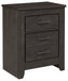 Details Made with engineered wood (MDF/particleboard/plywood) and decorative laminate for the right balance of affordability and durability, Dark charcoal finish over replicated oak grain, Linear pulls with dark pewter-tone finish, 2 smooth-gliding drawers, Assembly required