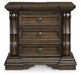 From its ornamental appliques to its large scale, this nightstand makes a bold statement. Spacious drawers store your bedtime essentials in stunning style. A hidden pull-out tray behind the bottom drawer puts your small valuables out of sight. The look is timeless. The feel? Right at home.