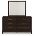 | Details | B618B5: Includes upholstered panel headboard, panel rails and panel footboard with slats, Made with hardwood solids, engineered wood and MDF substrates, Grayish brown wood-tone finish, Floating inset upholstered panel in polyester Next-Gen Nuvella fabric surrounded by LED backlight, Next-Gen Nuvella™ is a performance fabric that is soft, easy to clean, stain-resistant and durable, Clean fabric with mild soap and water, let air dry; for stubborn stains, use a solution of 4 oz. bleach to 28 oz. water, Light switch is located on each side of headboard and includes dual USB charging port (USB-A and USB-C), Power cord included; UL Listed, Foundation/box spring required, sold separately, Mattress available, sold separately, Assembly required, B618B1: Includes dresser and mirror, Made with hardwood solids, engineered wood and MDF substrates, Grayish brown wood-tone finish, Metal bar pulls with satin nickel-tone finish, 6 smooth-gliding drawers with dovetail construction and heavy duty ball-bearing side glides (top drawers felt lined), Mirror attaches to back of dresser, B618-92: Made with hardwood solids, engineered wood and MDF substrates, Grayish brown wood-tone finish, Metal bar pulls with satin nickel-tone finish, 2 smooth-gliding drawers with dovetail construction and heavy duty ball-bearing side glides (top drawers felt lined), | |
