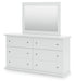 | Details | B139B42: Includes panel headboard/footboard and rails, Made with engineered wood (MDF/particleboard/plywood) and decorative laminate for the right balance of affordability and durability, Replicated solid white paint, Decorative laminate replicates natural or man-made material surfaces with consistent color, pattern and texture, Foundation/box spring required, sold separately, Mattress available, sold separately, Assembly required, B139B40: Includes dresser and mirror, Made of engineered wood (MDF/particleboard), Knobs with pewter-tone finish, Scalloped moulding, 6 smooth-operating drawers, Includes tipover restraint device, Mirror attaches to back of dresser; can also be mounted on wall horizontally or vertically, Safety is a top priority, clothing storage units are designed to meet the most current standard for stability, ASTM F 2057 (ASTM International), Drawers extend out to accommodate maximum access to drawer interior while maintaining safety, | |