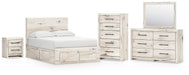 Details B2310B24: Includes panel headboard, storage footboard, 2 under bed storage units and roll slats , Made with engineered wood (MDF/particleboard/plywood) and decorative laminate for the right balance of affordability and durability, Rustic white finish over replicated reclaimed oak grain with authentic touch, Decorative laminate replicates natural or man-made material surfaces with consistent color, pattern and texture, 6 smooth-gliding storage drawers, Drawer interiors are lined with a faux linen laminate for a clean, finished look, Bed does not require additional foundation/box spring; accommodates most zero clearance adjustable bases with the addition of a bunkie board , Mattress available, sold separately, Minor assembly required, B2310B1: Made with engineered wood (MDF/particleboard/plywood) and decorative laminate for the right balance of affordability and durability, Rustic white finish over replicated reclaimed oak grain with authentic touch, Decorative laminate replicates natural or man-made material surfaces with consistent color, pattern and texture, Handles with dark pewter-tone finish, 6 smooth-gliding drawers, Drawer interiors are lined with a faux linen laminate for a clean, finished look, Framed front and pilasters, Safety is a top priority, clothing storage units are designed to meet the most current standard for stability, ASTM F 2057 (ASTM International), Drawers extend out to accommodate maximum access to drawer interior while maintaining safety, Mirror attaches to back of dresser; can also be mounted on wall horizontally or vertically , Minor assembly required, B2310-46: Made with engineered wood (MDF/particleboard/plywood) and decorative laminate for the right balance of affordability and durability, Rustic white finish over replicated reclaimed oak grain with authentic touch, Decorative laminate replicates natural or man-made material surfaces with consistent color, pattern and texture, Handles with dark pewter-tone finish, 5 smooth-gliding drawers, Drawer interiors are lined with a faux linen laminate for a clean, finished look, Framed front and pilasters, Safety is a top priority, clothing storage units are designed to meet the most current standard for stability, ASTM F 2057 (ASTM International), Drawers extend out to accommodate maximum access to drawer interior while maintaining safety, Minor assembly required, B2310-92: Made with engineered wood (MDF/particleboard/plywood) and decorative laminate for the right balance of affordability and durability, Rustic white finish over replicated reclaimed oak grain with authentic touch, Decorative laminate replicates natural or man-made material surfaces with consistent color, pattern and texture, Handles with dark pewter-tone finish, 2 smooth-gliding drawers, Drawer interiors are lined with a faux linen laminate for a clean, finished look, Framed front and pilasters, 2 slim-profile USB charging ports, Power cord included; UL Listed, Minor assembly required,