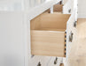 | Details | B427B8: Includes king panel headboard, footboard, rails and slats, Made with hardwood solids, okoume veneer and MDF substrates, White finish, Foundation/box spring required, sold separately, Mattress available, sold separately, Assembly required, B427B1: Includes dresser and mirror, Made with hardwood solids, okoume veneer and MDF substrates, White finish, 6 drawers with dovetail construction and metal center guides, Hardware with dark finish, Drawer interiors are lined with a wood grain laminate for a clean, finished look, Mirror attaches to back of dresser, B427-92: Made with hardwood solids, okoume veneer and MDF substrates, White finish, 2 drawers with dovetail construction and metal center guides, Hardware with dark finish, Drawer interiors are lined with a clean wood grain laminate for a clean, finished look, | |