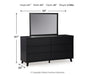 Details B1013-157: Made with engineered wood (MDF/particleboard/plywood) and decorative laminate for the right balance of affordability and durability, Matte black finish with subtle replicated wood grain, Decorative laminate replicates natural or man-made material surfaces with consistent color, pattern and texture, ¼" bolts (not included) are needed to attach headboard to your existing bed frame, Minor assembly required, B1013B11: Includes dresser and mirror, Made with engineered wood (MDF/particleboard/plywood) and decorative laminate for the right balance of affordability and durability, Matte black finish with subtle replicated wood grain, Decorative laminate replicates natural or man-made material surfaces with consistent color, pattern and texture, 6 smooth-gliding drawers, Drawer interiors are lined with a faux linen laminate for a clean, finished look, Integrated drawer pulls, Framed front and pilasters, Mirror attaches to back of dresser; can also be mounted on wall horizontally or vertically, Safety is a top priority, clothing storage units are designed to meet the most current standard for stability, ASTM F 2057 (ASTM International), Drawers extend out to accommodate maximum access to drawer interior while maintaining safety, Minor assembly required,