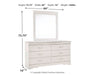 This queen sleigh headboard and dresser/mirror's crisp cottage white gives traditional Louis Philippe profiling a delightful style awakening. The look is timeless. The feel? Right at home. Dresser’s six smooth-gliding drawers with antiqued bail pulls beautifully accommodate.
