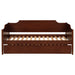 This modern classic-style daybed with trundle merges timeless elegance with practical design. The camelback silhouette and refined panel detailing add sophistication, while its construction from rubberwood, plywood, MDF, and cherry veneer ensures durability. The rich cherry finish highlights the natural wood grain, enhancing its classic appeal. Included slats provide reliable mattress support, and the smooth-gliding trundle with four wheels offers convenient additional sleeping space.