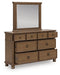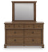 Rowlenstown California King Poster Bed with Mirrored Dresser