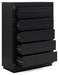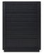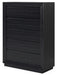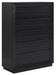 Details Made with pine solids, veneers and engineered wood substrate, Textured black wood stain with waxy topcoat, Hardware-less design, 5 drawers with fully finished interiors, dovetail construction and ball-bearing side glides (top drawers with felt-lined bottoms)