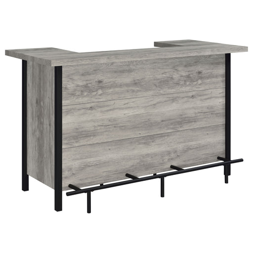Add functionality and style to an entertainment space with this rustic bar unit, appointed in a gray driftwood-inspired finish with distinctive met...