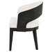 Every curve of this upholstered dining arm chair is a gesture of quiet sophistication. Its sculpted frame, finished in a deep burnished black, cradles a generously cushioned seat and softly wrapped backrest in creamy fabric. The open barrel design invites relaxed posture, while the smooth sweep of the arms lends an effortless sense of grace. Perfect for gathering, lingering, and savoring, this chair brings poetry to the table.