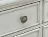 | Details | Made with hardwood solids, acacia wood veneer, MDF substrate and cast resin components, Antiqued white finish, 4 smooth-gliding drawers with felt lining, fully finished interiors, dovetail construction and heavy-duty ball-bearing side glides, Open shelf, Assembly required | |