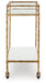 Details Made with sand casted aluminum, Antiqued brass-tone finish, White marble lower shelf, Clear glass top shelf, Casters for mobility, Color variations, fissures, mineral deposits and veining in the marble shelf are naturally formed characteristics, Assembly required