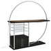 Transform your space into a beacon of style with this contemporary wine cabinet that marries function with cutting-edge design. Bathed in the glow of LED lighting with a choice of eight vibrant colors, this piece becomes the centerpiece of any entertainer's haven. The sleek chrome electroplated metal frame supports a durable composite wood tabletop, perfect for hosting an array of glasses and spirits. Below, a two-door cabinet conceals essentials, while three tiers cradle up to 21 bottles of your finest wine. With a built-in stemware rack, this bar doesn't just store your collection, it showcases it, making every occasion a toast-worthy affair.