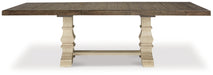 | Details | D647D17: Made with wood, veneer and engineered wood, Tabletop with textural weathered oak finish , Base with textured antiqued white finish , Removable center leaf, Table extends to 103" by pulling both ends and dropping in leaf, Seats up to 10 with removable leaf in place, Dining chairs sold separately, Assembly required, D647-01: Made of solid wood, Antiqued white finish, Cushioned seat upholstered in heavy woven polyester fabric, Assembly required, D647-02: Made of wood and engineered wood, Antiqued white finish, Cushioned seat with heavy woven polyester upholstery on front/back, Assembly required, | |