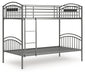 Details Made with welded tubular steel frame, Durable steel gray powder coat finish, Tubular steel slats for mattress support, Top bunk with protective side rails, Sturdy ladder leads to top bunk, Ladder with left or right side convertibility, Bunk can convert into two twin beds, Bed does not require additional foundation/box spring, Mattress available, sold separately, The Consumer Product Safety Commission states top bunks not be used for children under 6 years of age, Assembly required