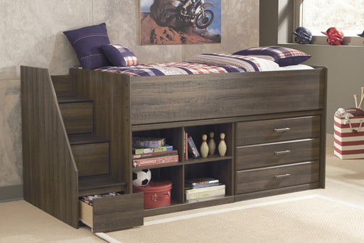 Juararo - Twin Loft Bed w/Bookcase, Drawers, & Left Storage Steps