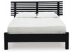 Sophisticated style for the savvy shopper. This slat panel bed prioritizes affordable, on-trend design. Its subtle replicated texture recalls the natural beauty of wood, highlighting the slatted styling. And a matte black finish suits different approaches to modern aesthetics. Mix and match with light and bright hues, or pair with other dark tones for a moody look.