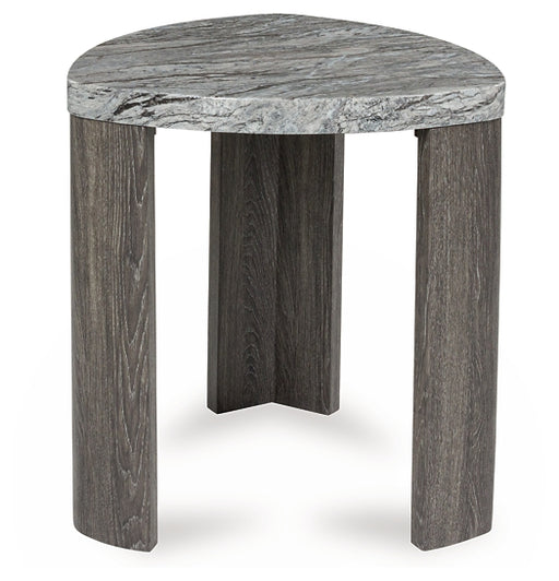 Signature Design by Ashley®Striking contemporary form, meet can’t-miss function. This end table pairs the look of faux gray marble with a weathered gray wood grain for a simp...