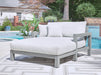 | Details | Made with aluminum, All-weather foam cushion core wrapped in soft polyester, Zippered cushions and throw pillows covered in solution-dyed high-performance fabric, Nuvella® is an outdoor fabric that can be cleaned and offers UV resistance, Clean fabric with mild soap and water, let air dry; for stubborn stains, use a solution of 4 oz. bleach to 28 oz. water, Stainless steel hardware, Designed to withstand the harsh elements of the outdoors, 2 throw pillows included, Assembly required | |