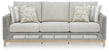 This sofa invites your casual contemporary style outdoors. With its resin wicker in a chic neutral hue, it expertly marries refined design with durability. Breezy summer mornings and cold winter nights are made all the more comfortable with high-performance Nuvella+ fabric covering the cushion.