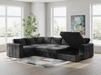 - Includes 4 pieces: left-arm facing loveseat, armless pop-up sleeper, wedge and right-arm facing corner chaise with storage