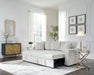 - Includes 2 pieces: left-arm facing corner chaise with storage and pop up sleeper with drop down table