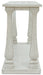Details Made with hardwood solids, elm veneer, MDF substrates and cast resin, Antiqued white finish, 4 cast resin baluster legs, Open lower shelf, Assembly required