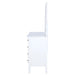 • Coastal details highlight a modern ten-drawer dresser and mirror to bring compelling, fresh style