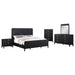 • Stylish and modern, a contemporary wood bedroom set features a wire brushed black finish