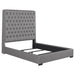 This impressively-styled bed makes a bold yet fashionable statement. It features an imposing, 72" high headboard that's bold. Yet, the headboard comes with button tufted fabric that's stylish and eye-catching. The bed sits on solid wood legs finished in lush cappuccino for a touch of charm. This bed is a graceful addition to the bedroom.