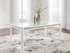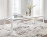 | Details | Made with solid wood components, MDF substrate and decorative PVC laminate, Bright white lacquer finish, Tabletops feature rhinestone and textured PVC framing with glass panels, Rhinestone accent trim, Seats up to 10, Removable center leaf, Table extends by pulling both ends and dropping in leaf, Assembly required | |