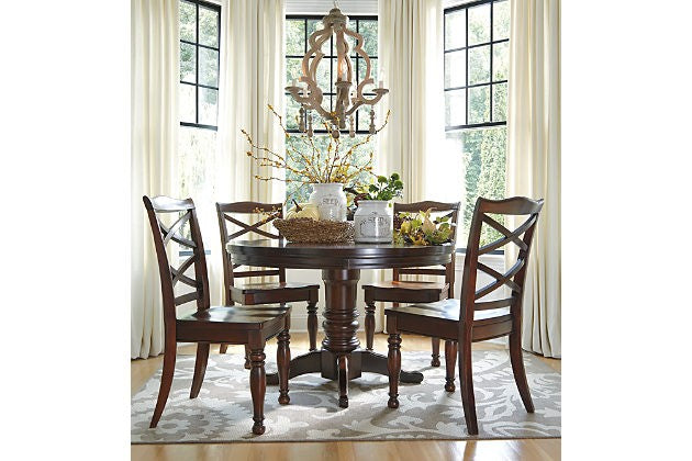 The quality craftsmanship is clear to see. The classic design elements—including the pedestal base and turned detailing—are easy to love. Porter dining room table is beautifully elegant, without looking fussy. Let style come full circle with a round table design, or pop in the leaf for more table space in a shapely oval.
