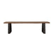 Bring a touch of organic beauty and modern edge to your dining space with this solid sheesham wood dining bench. Featuring a live edge seat, each piece showcases unique natural grain variations for a one-of-a-kind look. The black powder-coated metal base provides sturdy support with a sleek, angular design that enhances its contemporary appeal. Perfect for seating two to three guests, this bench is a versatile addition to rustic, industrial, or modern dining settings.
