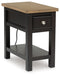| Details | Made with acacia solids, acacia veneer and MDF substrate, Tabletop with light wood-tone finish, Dark chocolate brown body, 1 smooth-gliding drawer, 110V power supply with USB-A and USB-C charging ports, Power cord included; UL Listed | |