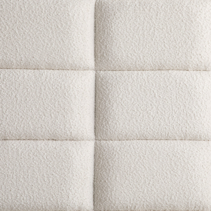 • Extra-tall headboard and low footboard with matching grid tufting adds airy structure