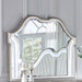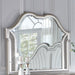 Create an instantaneous vanity setup with this elegant, glam, framed mirror. A double arched design crowns the top, offering curvaceous sweeping lines. The silver oak finished molded frame offers an eye-catching dimension that lends a stately presence when mounted above dressers. Glittering side panels elevate the look into a luxurious statement piece. Tucked within the classic and curved frame is a beveled mirror that offers extra depth to the overall look of this stylish glam bedroom piece.