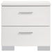 Elevate your bedroom with the sleek sophistication of this contemporary bedroom set. The panel bed features a clean-lined white high gloss headboard and a faux leather upholstered frame, delivering a refined yet modern aesthetic. Chrome-finished accents add a polished touch, while smooth-gliding drawers ensure effortless functionality. Designed for both style and durability, this set brings a fresh, minimalist feel to any space.