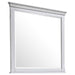 Evoking a casual, rustic beachside bungalow, this four-piece bedroom set comes complete with a platform bed, single nightstand, and a dresser and mirror combo. The panel style design features a shutter style cottage aesthetic in the headboard, footboard, and dresser cabinets. This entire set also offers a wire-brushed finish that is subtle and refined. Modern and convenient details include a nightstand with a convenient pull-out service tray and cord access for charging handheld devices, as well as felt-lined top drawers and soft-closing drawer glides. Across the set, each drawer is adorned with a dark gunmetal hardware.