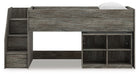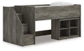 | Details | Includes loft bed, left storage steps with loft ends, roll slats and loft bookcase, Made with engineered wood (MDF/particleboard/plywood) and decorative laminate for the right balance of affordability and durability, Rustic warm gray finish over replicated oak grain with authentic touch, Decorative laminate replicates natural or man-made material surfaces with consistent color, pattern and texture, 4 storage cubbies, Bed does not require additional foundation/box spring, Mattress available, sold separately, Assembly required | |