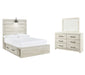 Cambeck Panel Bed With 4 Storage Drawers With Mirrored Dresser