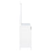 • White finish pairs with brushed nickel handles and sleek vertical tube accents