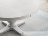 Details PCD824D10: Includes dining table top and base, Top made with hardwood solids, mango wood veneer and MDF substrate, Cast resin pedestal base, Antiqued white finish, Assembly required, PCD824-02: Made with sturdy solid wood frame, Antiqued white finish, Polyester upholstery, Foam cushioned seat, Includes adjustable levelers, Assembly required,