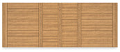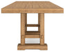 Details Made with rubberwood solids, distressed pine veneers and MDF substrates, Distressed light brown pine finish, Double trestle base, Seats up to 10, 2 removable center leaves, Table extends by pulling both ends and dropping in leaf, Solid wood stretcher, Assembly required