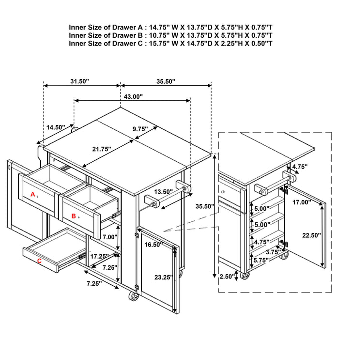 • Locking casters allow for secure positioning or easy movement across the kitchen